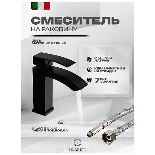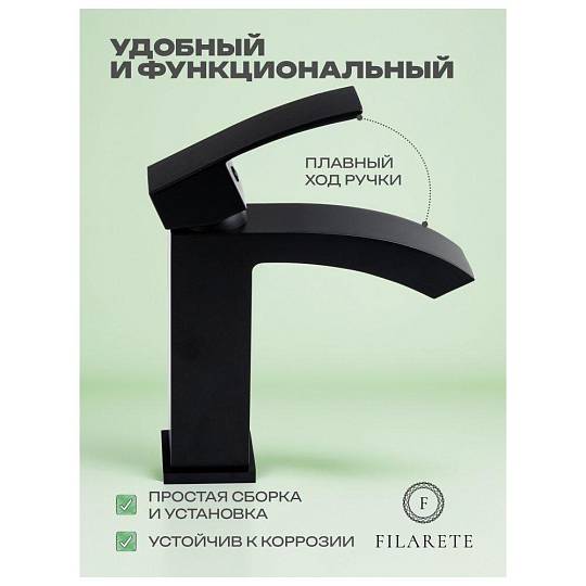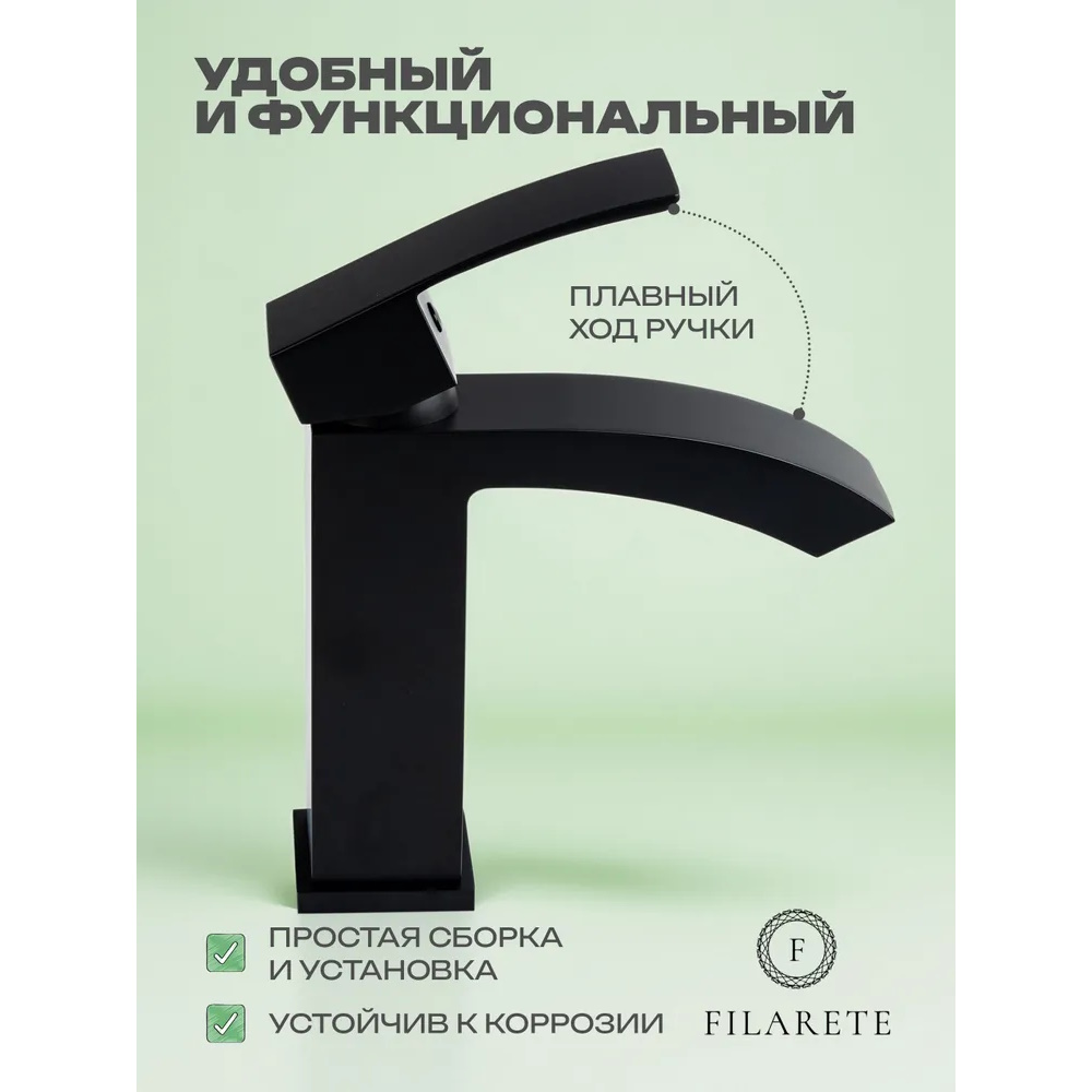Смеситель для раковины FILARETE Waterfall FL5010BL, черный. Гарантийный срок: 7 лет. Управление: рычажное. Стилистика дизайна: современный стиль. Материал: латунь. Монтаж: на раковину.