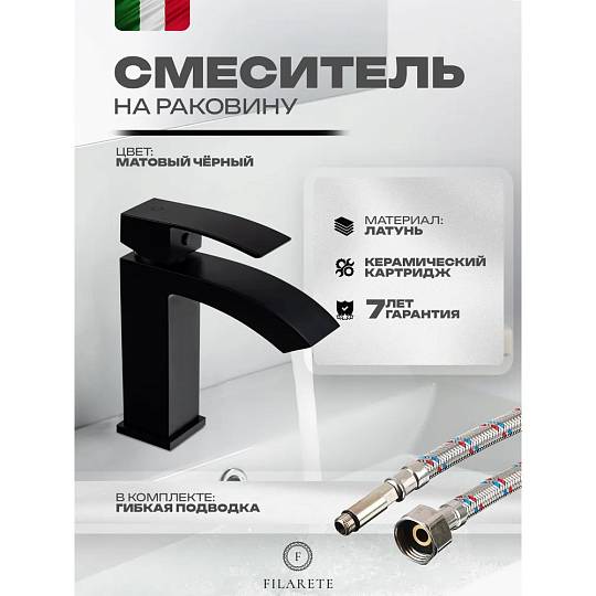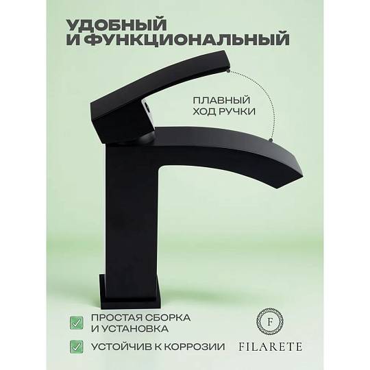 Смеситель для раковины FILARETE Waterfall FL5010BL, черный купить по цене 13 500 руб.