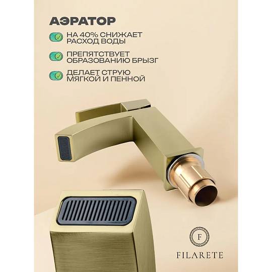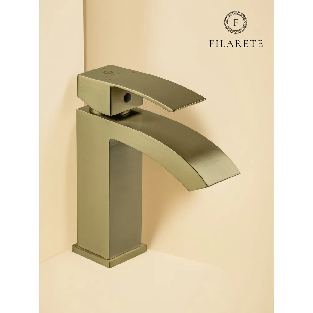 Смеситель для раковины FILARETE Waterfall FL5010MG, матовое золото. Гарантийный срок: 7 лет. Управление: рычажное. Стилистика дизайна: современный стиль. Материал: латунь. Монтаж: на раковину.