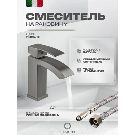 Смеситель для раковины FILARETE Waterfall FL5010NK, никель. Гарантийный срок: 7 лет. Управление: рычажное. Стилистика дизайна: современный стиль. Материал: латунь. Монтаж: на раковину.