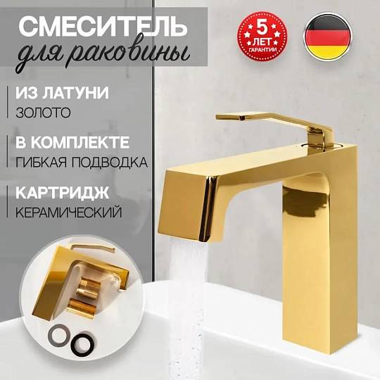 Смеситель для раковины Hansberge H1065GO, золото купить по цене 12 330 руб.