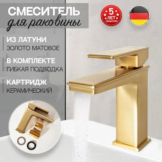 Смеситель для раковины Hansberge H1070MG, матовое золото