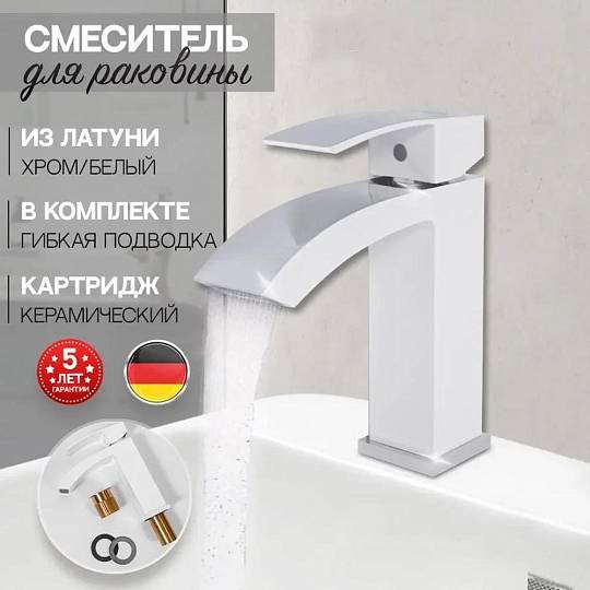 Смеситель для раковины Hansberge H1077W, белый/хром