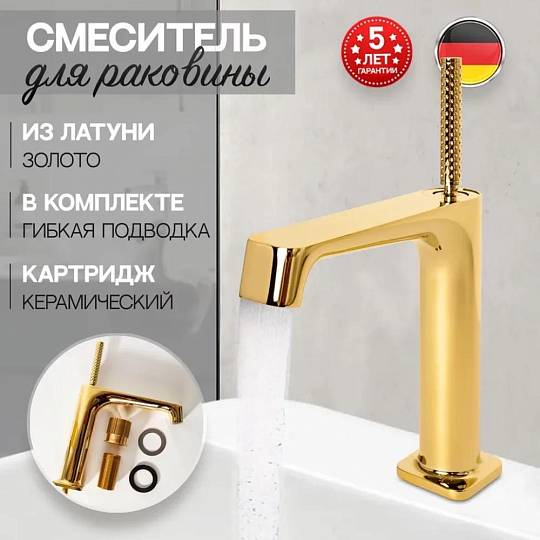Смеситель для раковины Hansberge H1090GO, золото купить по цене 14 220 руб.