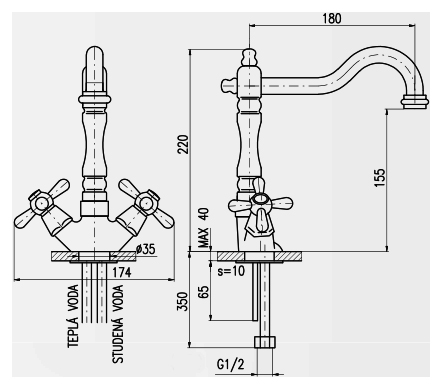 Смеситель для раковины Rav Slezak Morava retro MK320.5/8 монолитный, двухвентильный, изготовлен из высококачественной латуни, которая исключает какую-либо коррозию. Поворотный излив, 360 градусов, длиной 180 мм. Латунные рукоятки. Качественные керамические кран буксы, гарантируют долговечность и мягкий поток воды, производство Германия. Гибкая подводка G1/2, длиной 350 мм. В комплекте смеситель, гибкая подводка и крепления.