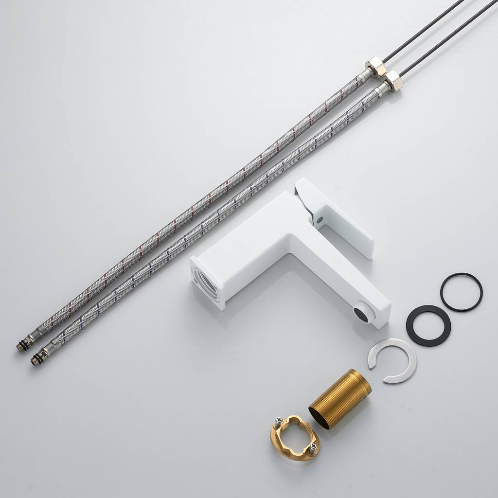 Установка смесителя не потребует сложных манипуляций: монтаж осуществляется с помощью надёжной латунной гайки, а в комплект уже входит гибкая подводка 1/2" длиной 50 см — всё необходимое для быстрого и качественного подключения.