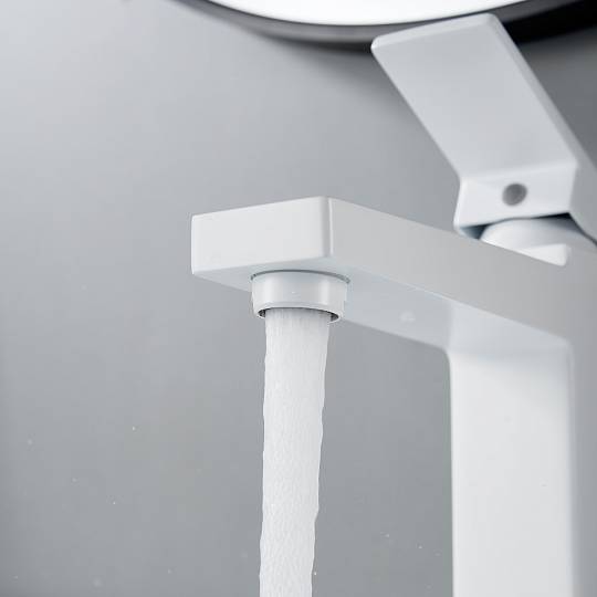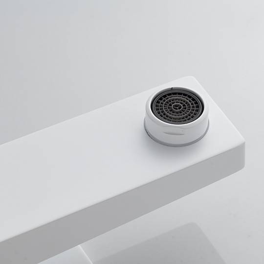 Внутреннее устройство смесителя отвечает самым высоким стандартам качества. Керамический картридж обеспечивает плавное и точное регулирование температуры и напора воды, а эргономичное рычажное управление делает процесс максимально комфортным. Фиксированный излив оснащён современным аэратором, который не только насыщает поток воздуха, делая его мягким и равномерным, но и способствует рациональному расходу воды.