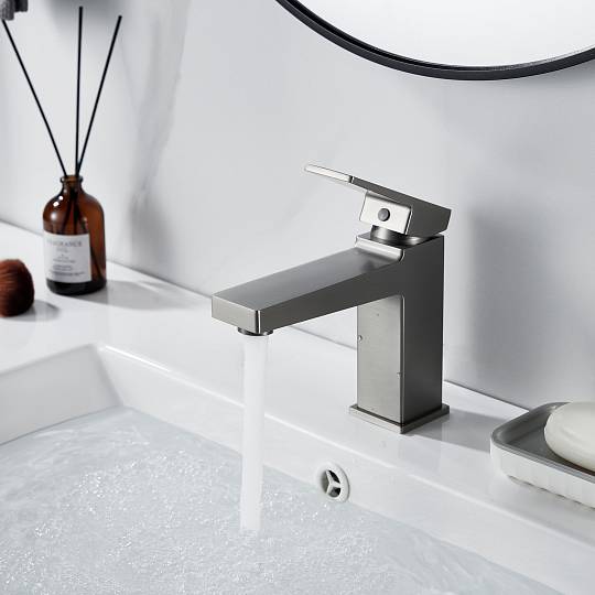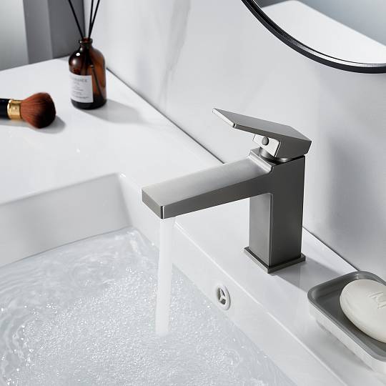 Смеситель для раковины Rose R2801T в цвете "оружейная сталь" — это воплощение современного подхода к дизайну сантехнических приборов, где каждая деталь продумана до мелочей. Его внешний облик сразу привлекает внимание: строгие, геометрически выверенные грани создают эффектный визуальный акцент и придают смесителю неповторимый характер в духе минимализма. Такой аксессуар не просто выполняет свою функциональную роль — он становится выразительным элементом интерьера, подчёркивая безупречный вкус владельца.