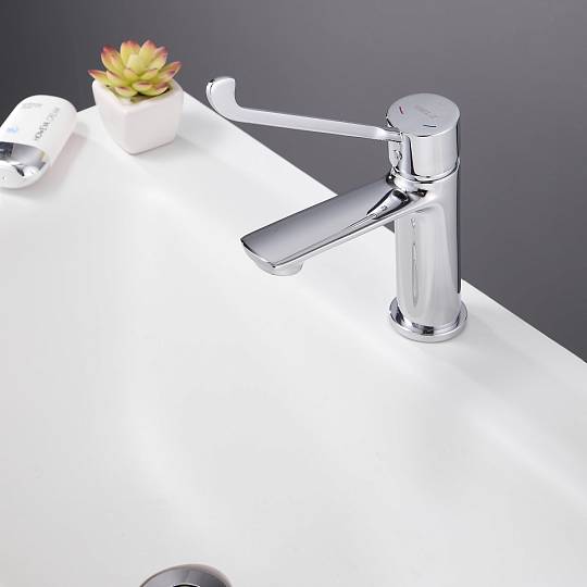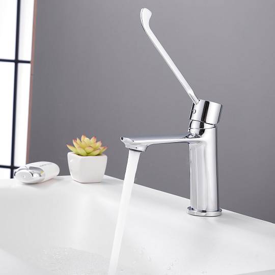Инновационный механизм с 35-миллиметровым керамическим картриджем обеспечивает плавное и точное управление потоком воды, а эргономичный хирургический рычаг делает использование смесителя максимально комфортным даже при минимальном усилии.