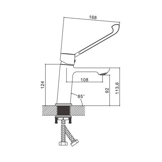 Практичный фиксированный излив, оснащенный современным аэратором, не только создает мягкую и равномерную струю воды, но и способствует существенной экономии водных ресурсов. Монтаж смесителя осуществляется быстро и легко благодаря надежной гайке, а входящая в комплект гибкая подводка G 1/2" длиной 55 см обеспечивает удобное подключение к системе водоснабжения.