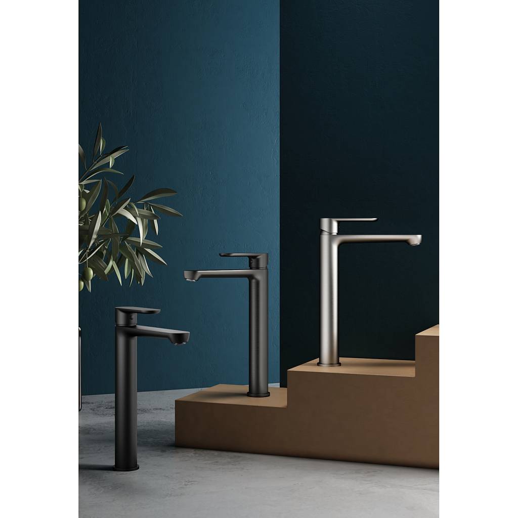 Смеситель для раковины Splenka S222.15.06, черный. Смеситель высокий для раковины нержавеющая сталь, округлой формы. Смеситель с креплением на гайке. Все для монтажа и эксплуатации есть в комплекте.