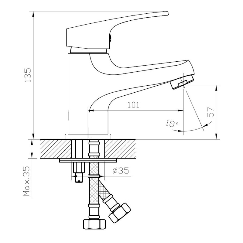 Смеситель для раковины Voda SPL26, хром. Производство: Россия. Гарантия: 5 лет. Материал: пластик. Управление: рычажное. Излив: традиционный,фиксированный. Подводка: гибкая, 1/2" .
