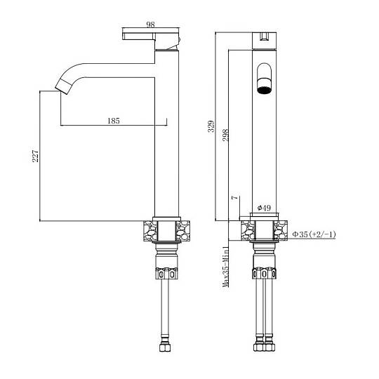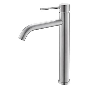 Смеситель для раковины высокий Voda VSL25, сатин. Производство: Россия. Гарантия: 7 лет. Материал: нержавеющая сталь. Управление: рычажное. Излив: традиционный,фиксированный. Подводка: гибкая, 1/2" .