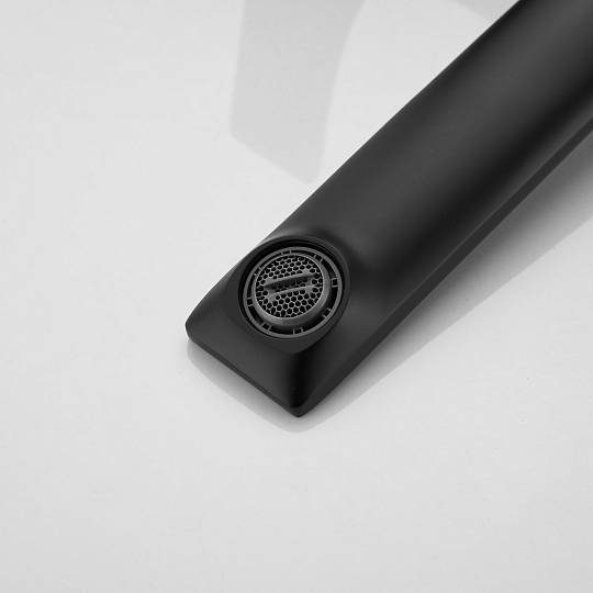 Фиксированный излив оснащён съёмным пластиковым аэратором — небольшим, но крайне важным элементом, который насыщает поток воды воздухом, делая его мягким и объёмным; снижает расход воды без потери комфорта использования; легко снимается для очистки от известковых отложений, упрощая уход за смесителем.
