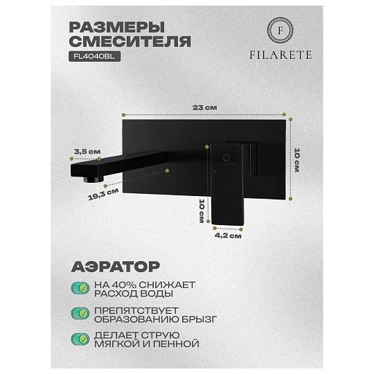 Смеситель для раковины встраиваемый FILARETE Fing FL4040BL, черный. Гарантийный срок: 7 лет. Управление: рычажное. Стилистика дизайна: современный стиль. Материал: латунь. Монтаж: внутренний (скрытый).