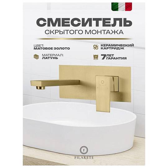 Смеситель для раковины встраиваемый FILARETE Fing FL4040MG, матовое золото. Гарантийный срок: 7 лет. Управление: рычажное. Стилистика дизайна: современный стиль. Материал: латунь. Монтаж: внутренний (скрытый).