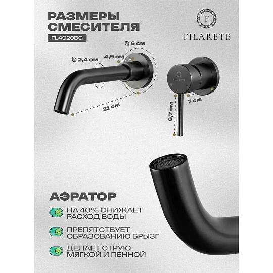 Смеситель для раковины встраиваемый FILARETE Roun FL4020BG, графит. Гарантийный срок: 7 лет. Управление: рычажное. Стилистика дизайна: современный стиль. Материал: латунь. Монтаж: внутренний (скрытый).