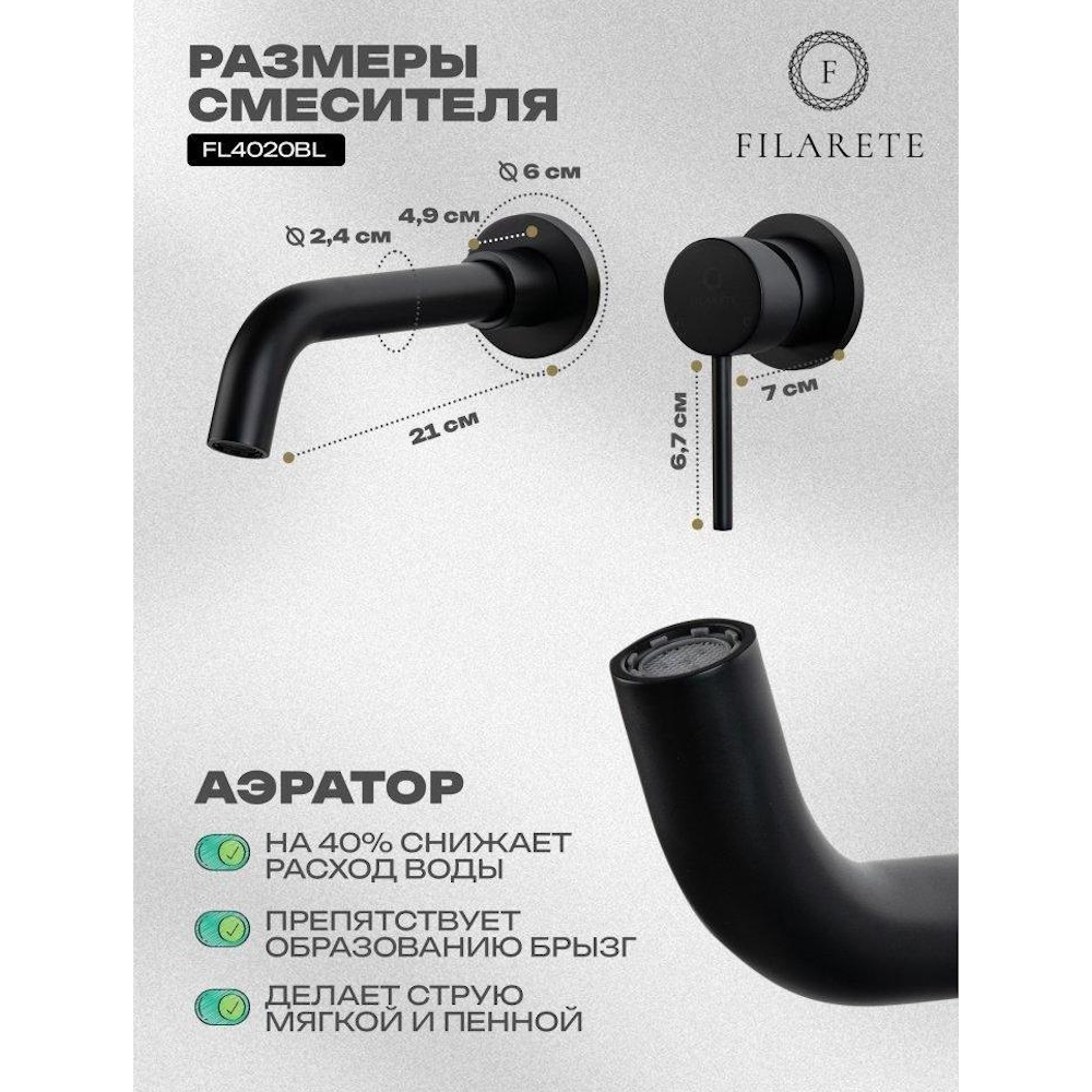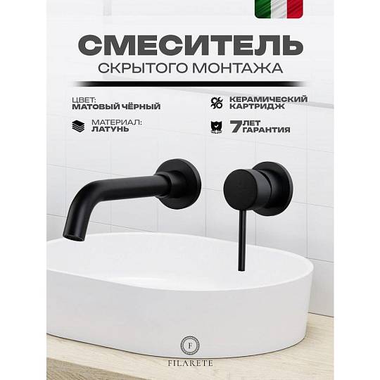 Смеситель для раковины встраиваемый FILARETE Roun FL4020BL, черный. Гарантийный срок: 7 лет. Управление: рычажное. Стилистика дизайна: современный стиль. Материал: латунь. Монтаж: внутренний (скрытый).