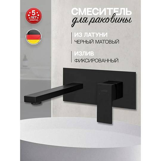 Смеситель для раковины встраиваемый Hansberge H688BL, черный купить по цене 15 930 руб.