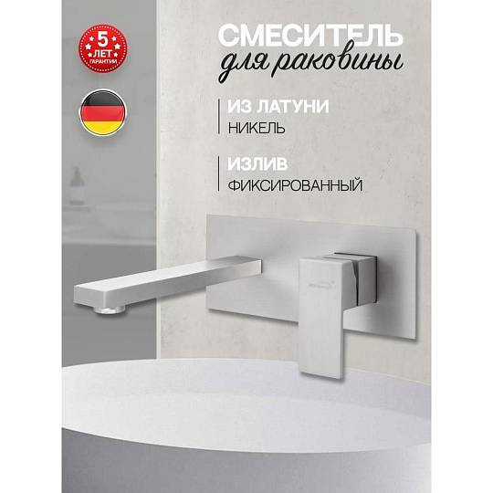Смеситель для раковины встраиваемый Hansberge H688NK, никель купить по цене 17 370 руб.