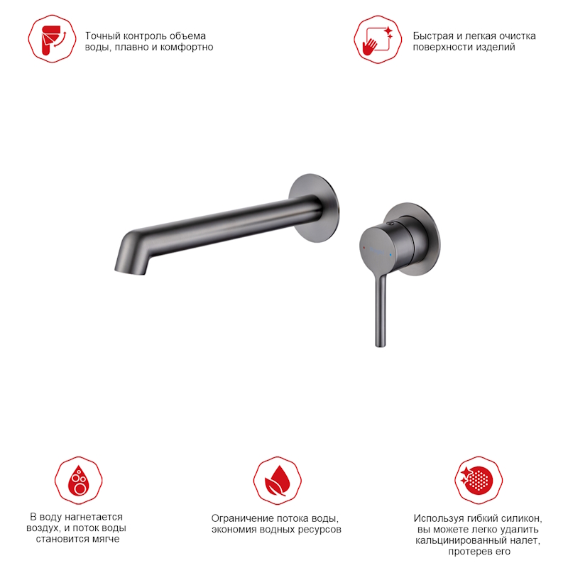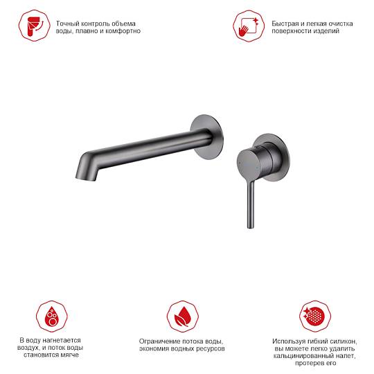 Смеситель для раковины встраиваемый Raglo R20.11.09, графит купить по цене 12 236 руб.