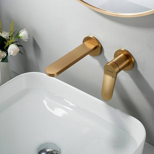 Встраиваемый смеситель для раковины Shevanik S4341G в современном цвете "золотой сатн" (матовое полированное золото) — это гармония современного дизайна, безупречной функциональности и долговечности. Скрытый в стене корпус из высококачественной латуни не только обеспечивает надёжность, но и придаёт интерьеру ванной комнаты чистоту линий и минимализм, подчёркивая эстетику пространства.