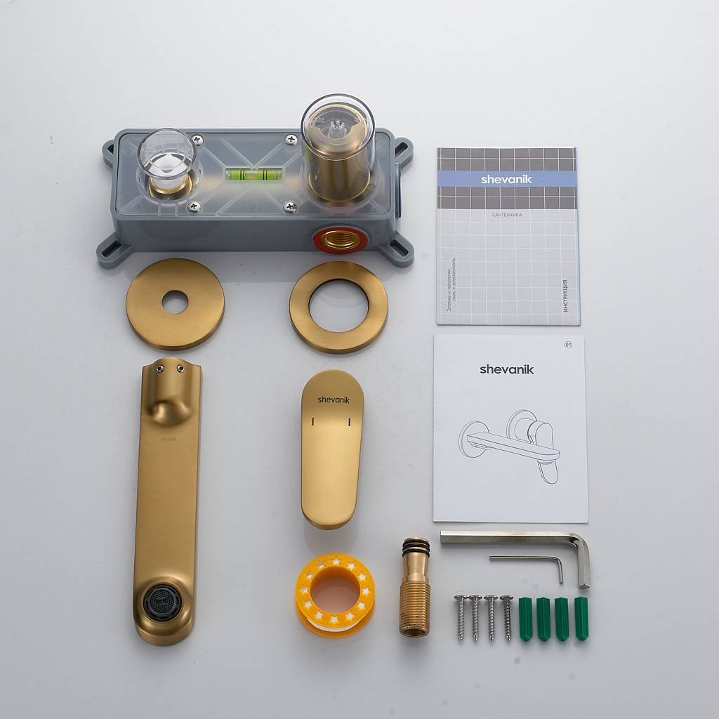 Смеситель для раковины встраиваемый Shevanik S4341G, золотой сатин купить по цене 9 999 руб.