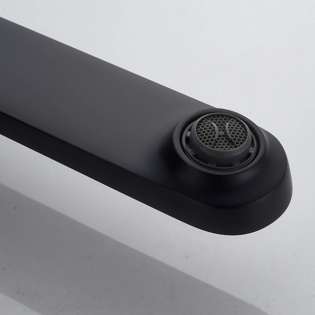Управление осуществляется с помощью одного плавного рычага, оснащённого керамическим картриджем — это гарантирует точную регулировку температуры и напора воды, а также исключает протечки даже после тысяч циклов использования.