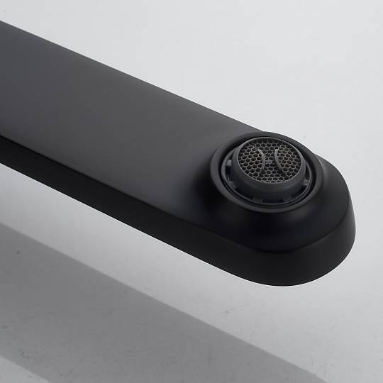 Фиксированный излив с продуманной формой плавно направляет струю, а съёмный аэратор делает воду мягкой и насыщенной, предотвращая брызги и экономя расход. Благодаря встроенному уровню внутри корпуса монтаж проходит легко и точно — вы можете быть уверены, что смеситель будет установлен идеально ровно.