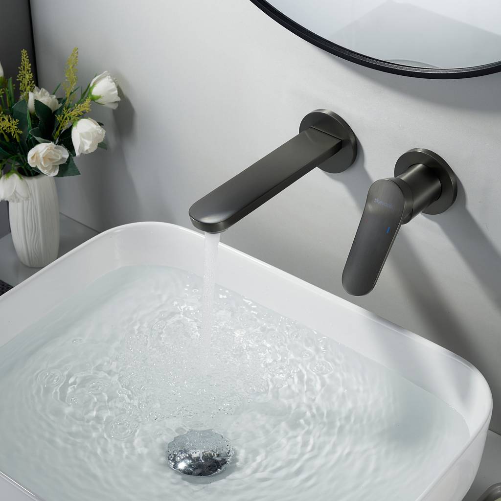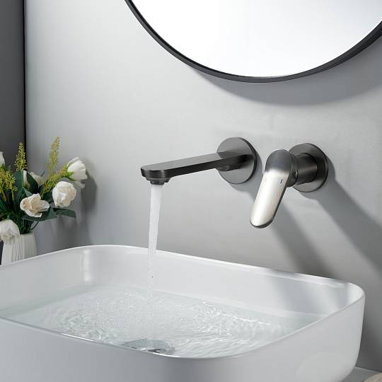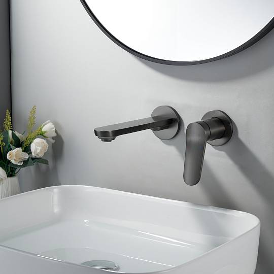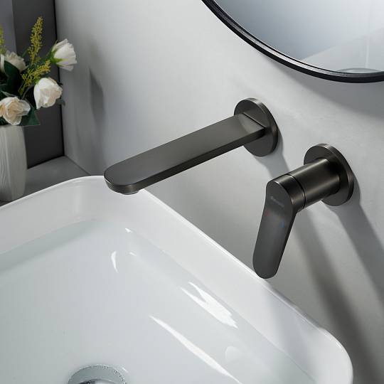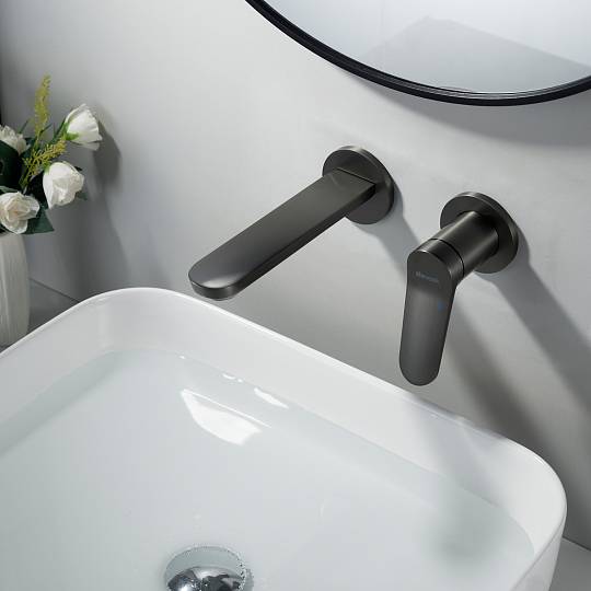 Встраиваемый смеситель для раковины Shevanik S4341T в современном цвете "оружейная сталь"  — это гармония современного дизайна, безупречной функциональности и долговечности. Скрытый в стене корпус из высококачественной латуни не только обеспечивает надёжность, но и придаёт интерьеру ванной комнаты чистоту линий и минимализм, подчёркивая эстетику пространства.