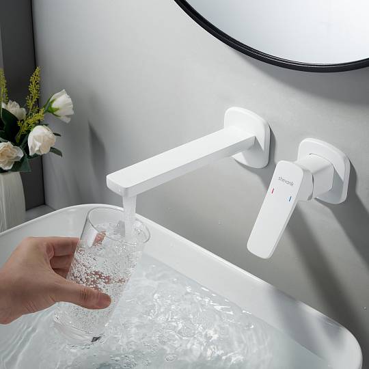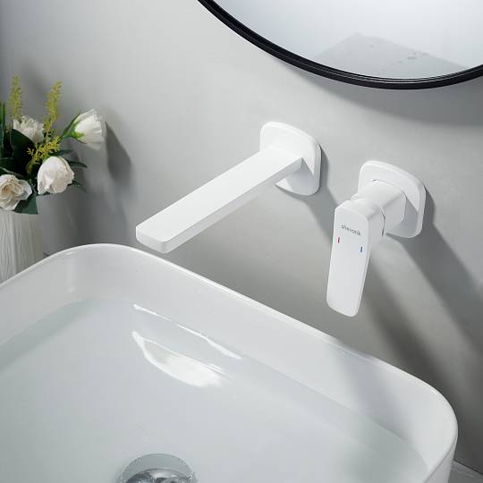 Встраиваемый смеситель для раковины Shevanik S9941C в белом матовом цвете — это гармония современного дизайна, безупречной функциональности и долговечности. Скрытый в стене корпус из высококачественной латуни не только обеспечивает надёжность, но и придаёт интерьеру ванной комнаты чистоту линий и минимализм, подчёркивая эстетику пространства.
