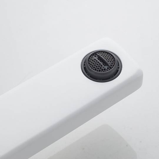 Фиксированный излив с продуманной формой плавно направляет струю, а съёмный аэратор делает воду мягкой и насыщенной, предотвращая брызги и экономя расход. Благодаря встроенному уровню внутри корпуса монтаж проходит легко и точно — вы можете быть уверены, что смеситель будет установлен идеально ровно.