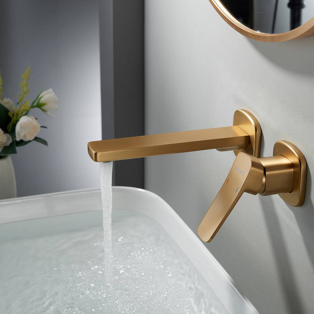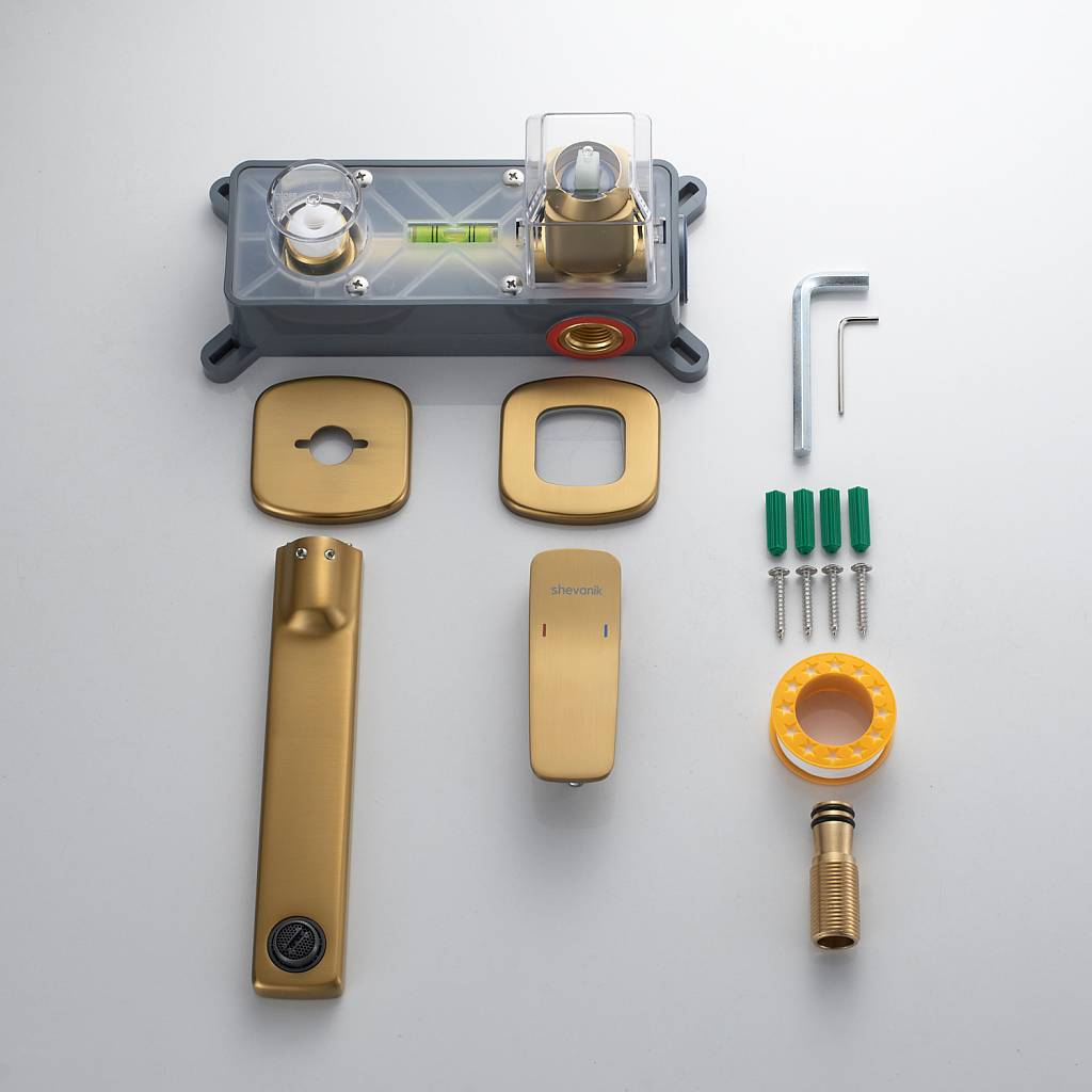 Встраиваемый смеситель для раковины Shevanik S9941G в современном цвете "золотой сатн" (матовое полированное золото) — это гармония современного дизайна, безупречной функциональности и долговечности. Скрытый в стене корпус из высококачественной латуни не только обеспечивает надёжность, но и придаёт интерьеру ванной комнаты чистоту линий и минимализм, подчёркивая эстетику пространства.