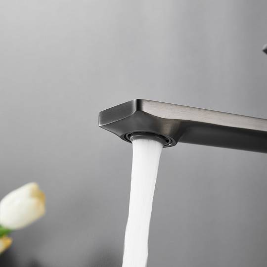 Особого внимания заслуживает высокий излив, специально разработанный для раковин‑чаш. Его форма обеспечивает удобный доступ к любой точке чаши, делая гигиенические процедуры и мытьё рук по‑настоящему комфортными. На конце излива установлен съёмный пластиковый аэратор — незаменимый элемент для экономии воды и повышения качества потока. Насыщая струю воздухом, он создаёт мягкий, объёмный поток при минимальном расходе воды. При этом аэратор легко снимается для очистки от известковых отложений, что существенно упрощает уход за смесителем.