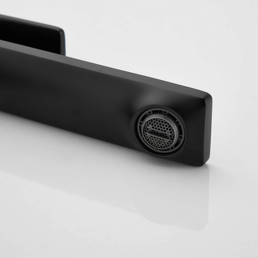 Особого внимания заслуживает высокий излив, специально разработанный для раковин‑чаш. Его форма обеспечивает удобный доступ к любой точке чаши, делая гигиенические процедуры и мытьё рук по‑настоящему комфортными. На конце излива установлен съёмный пластиковый аэратор — незаменимый элемент для экономии воды и повышения качества потока. Насыщая струю воздухом, он создаёт мягкий, объёмный поток при минимальном расходе воды. При этом аэратор легко снимается для очистки от известковых отложений, что существенно упрощает уход за смесителем.