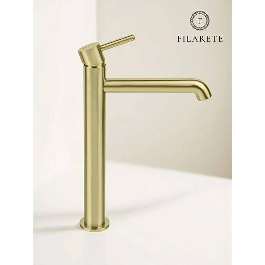 Смеситель для раковины высокий FILARETE Roun FL6020MG, матовое золото. Гарантийный срок: 7 лет. Управление: рычажное. Стилистика дизайна: современный стиль. Материал: латунь. Монтаж: на столешницу.