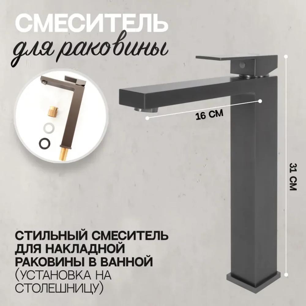Смеситель для раковины высокий Hansberge H2070BG, графит купить по цене 19 350 руб.