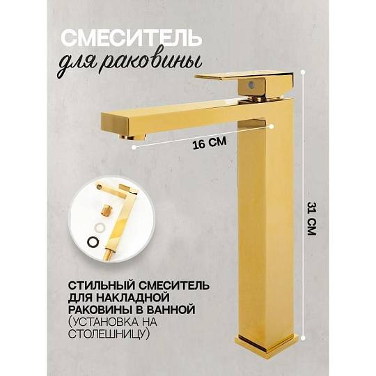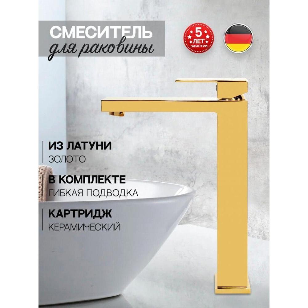 Смеситель для раковины высокий Hansberge H2070GO, золото купить по цене 18 270 руб.