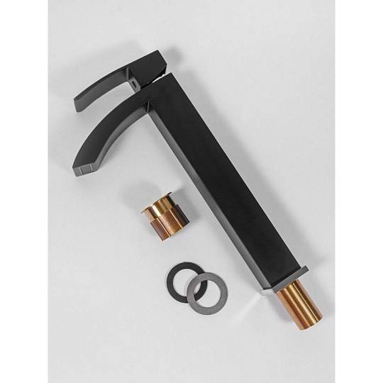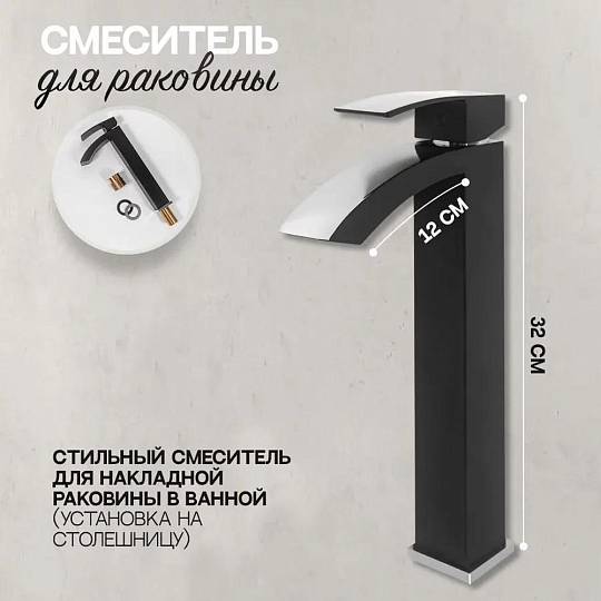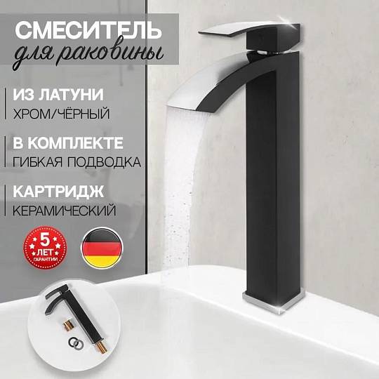 Смеситель для раковины высокий Hansberge H2077BC, черный/хром купить по цене 15 120 руб.