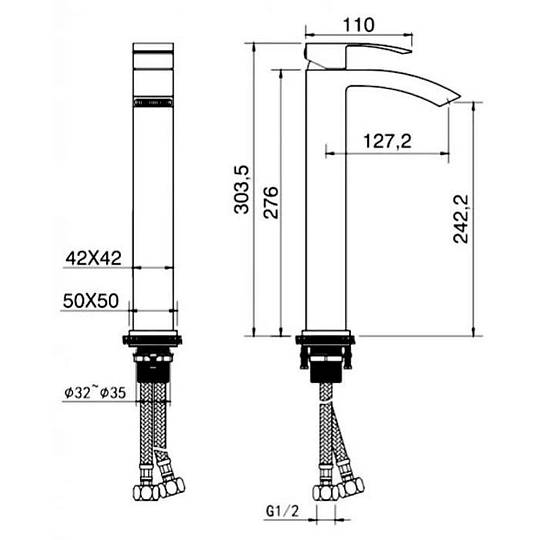 Смеситель для раковины высокий Hansberge H2077WW, белый