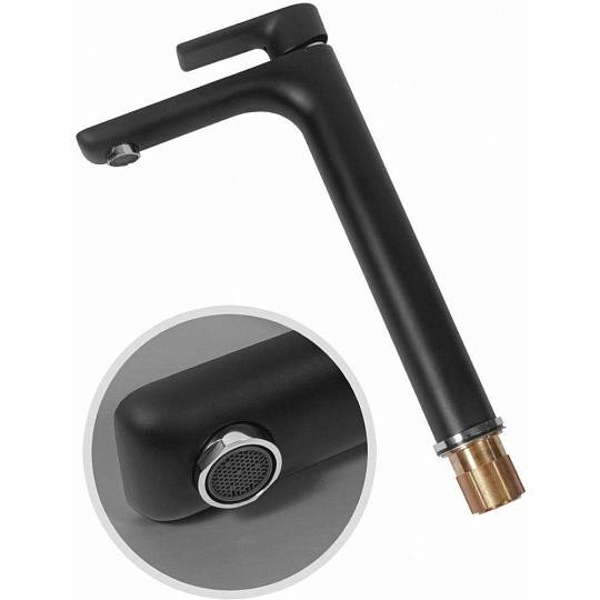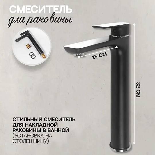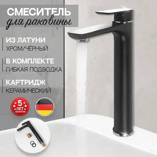 Смеситель для раковины высокий Hansberge H2099BC, черный/хром купить по цене 16 020 руб.