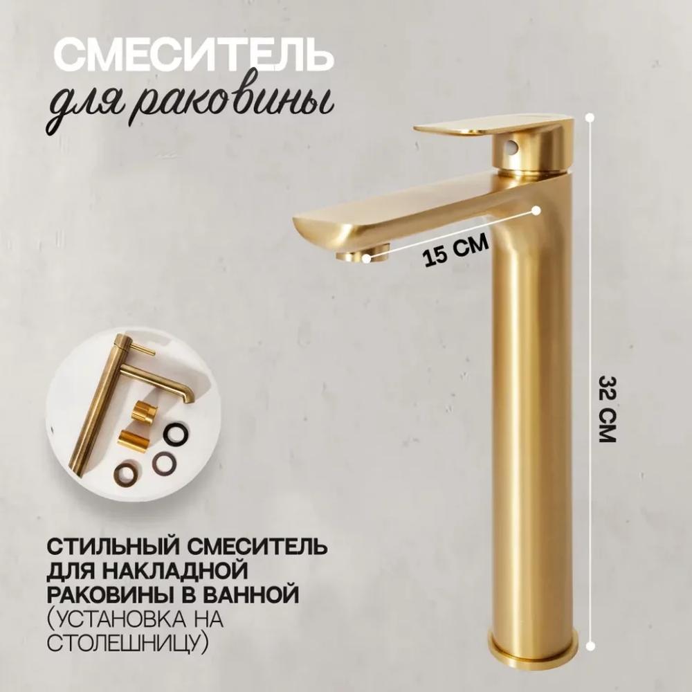 Смеситель для раковины высокий Hansberge H2099MG, матовое золото купить по цене 17 550 руб.