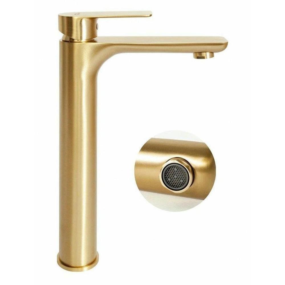 Смеситель для раковины высокий Hansberge H2099MG, матовое золото