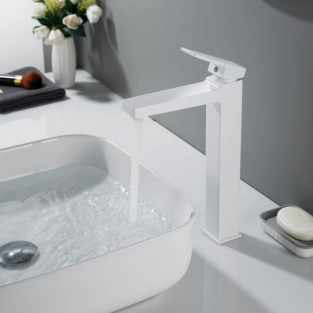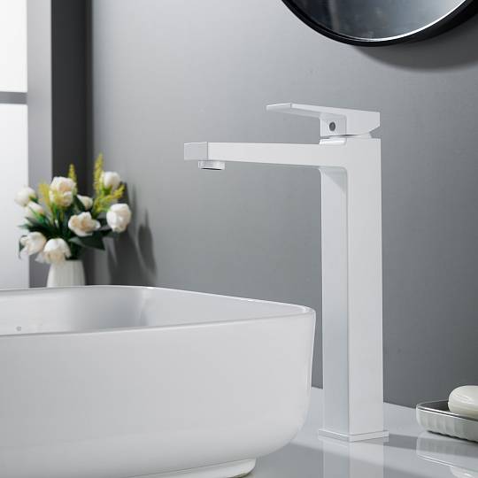 Смеситель для раковины высокий Rose R2811C, белый