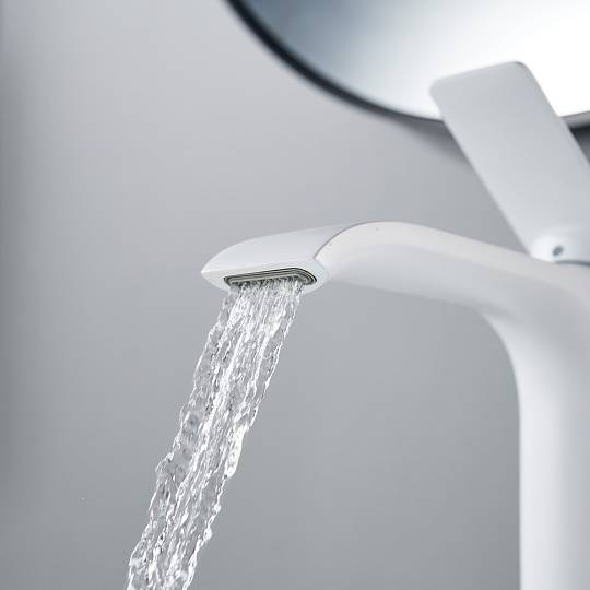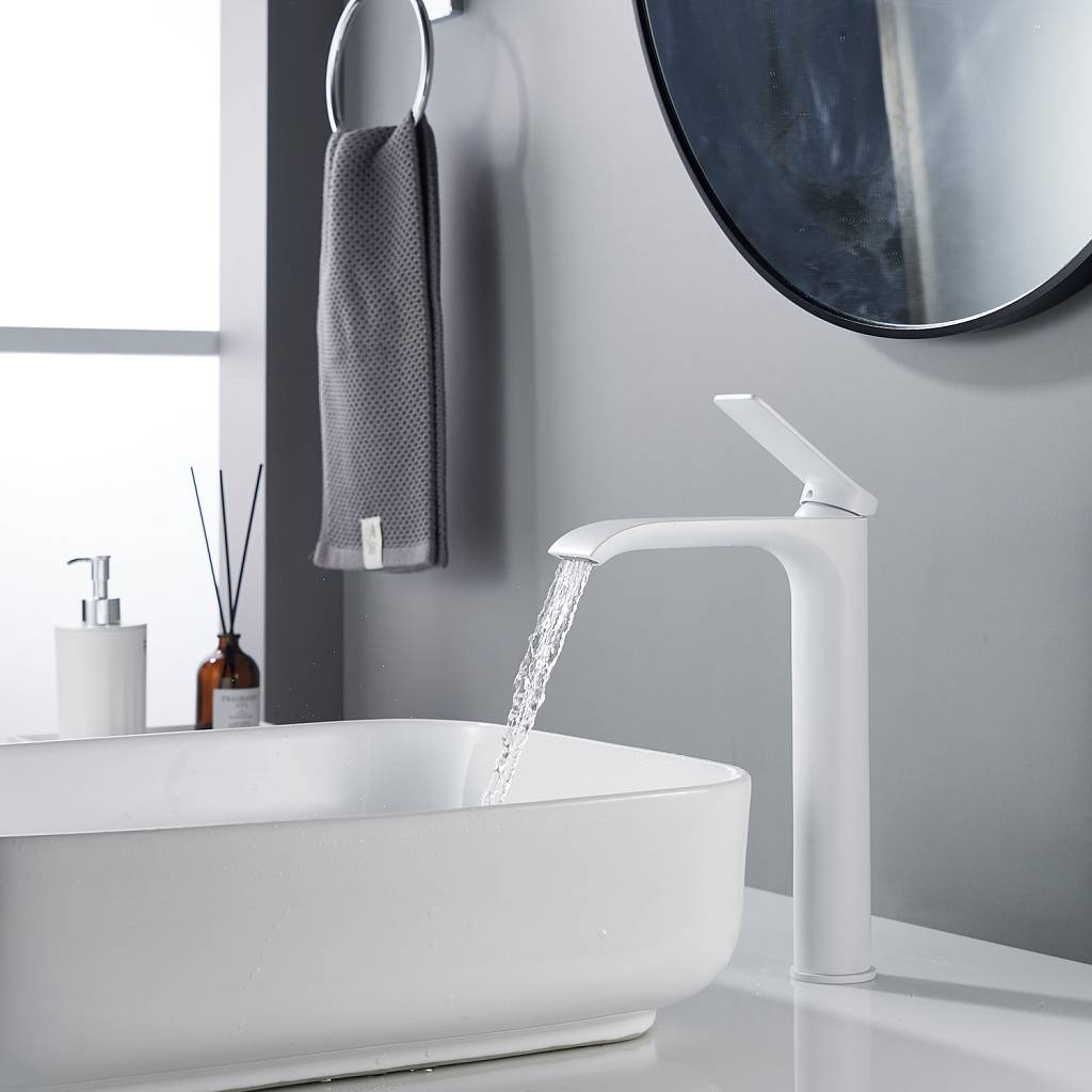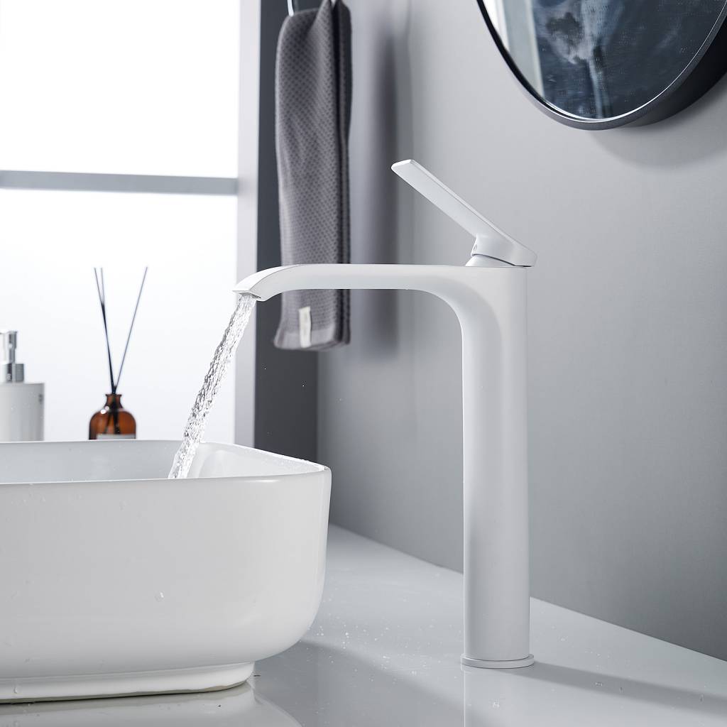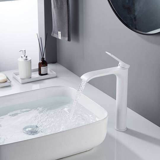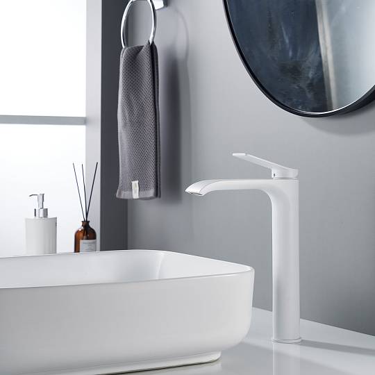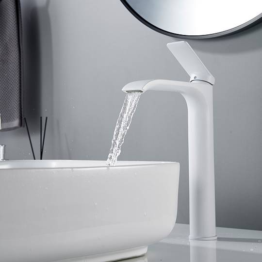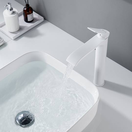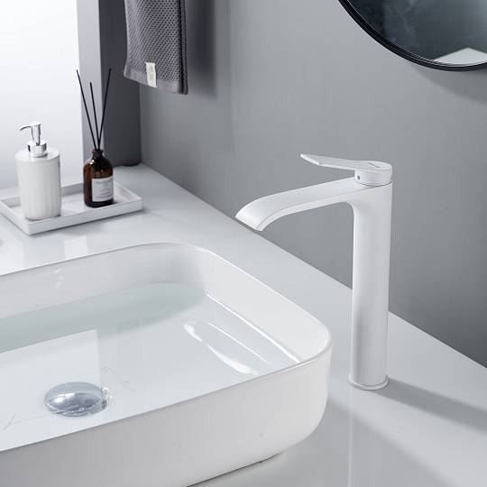 Высокий смеситель для раковины Shevanik S4111C в белом матовом цвете — идеальное решение для современных интерьеров, особенно для раковин-чаш. Его современный дизайн с плавными линиями придаст вашей ванной комнате элегантность и стиль. Смеситель оснащён надёжным керамическим картриджем и удобным рычажным управлением, что обеспечивает долговечность и простоту использования.