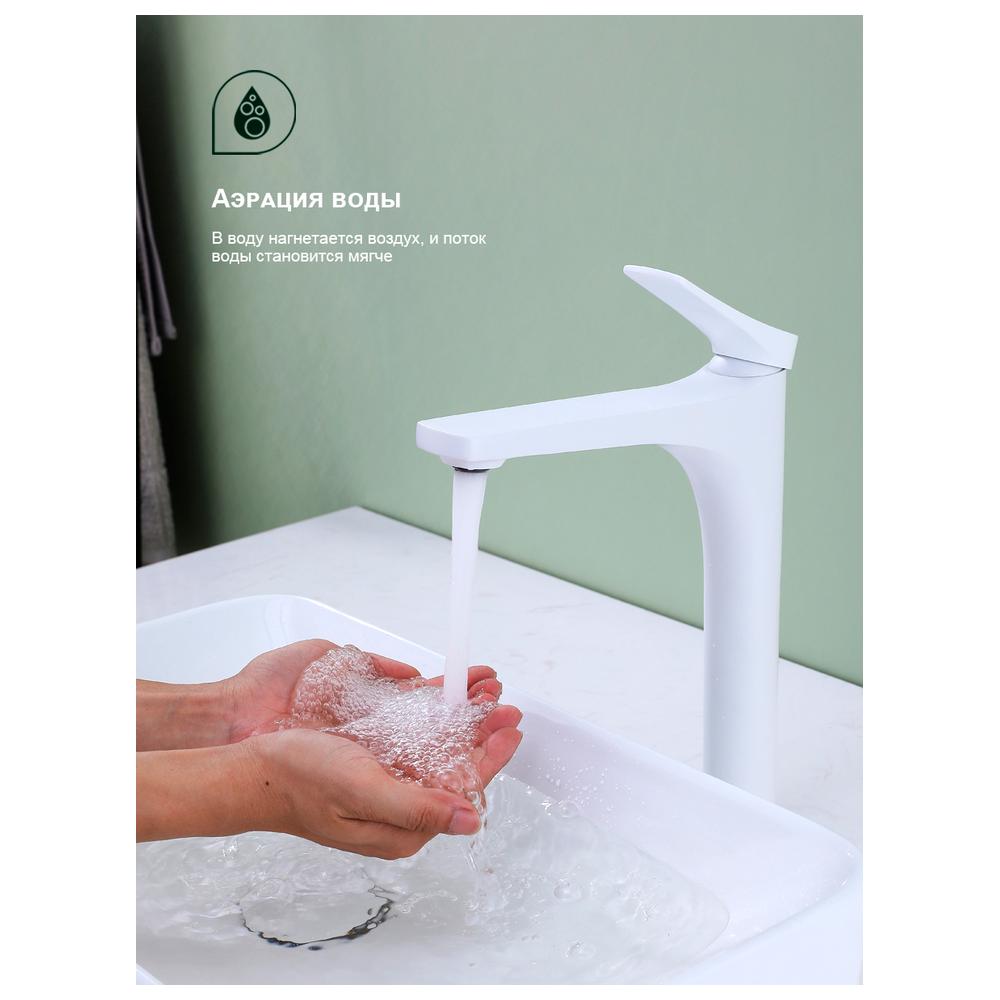 Смеситель для раковины высокий Splenka S54.15.08, белый — это идеальное сочетание современного минималистичного дизайна и высокого качества. Изготовленный из латуни, этот высокий кран для умывальника обеспечивает долговечность и надёжность в использовании, а также устойчивость к механическим повреждениям. Механизм смесителя для раковины основан на керамическом картридже с рычажным управлением, что гарантирует лёгкость и точность регулировки температуры и напора воды. Его минималистичный дизайн станет настоящим украшением вашей ванной комнаты, гармонично вписываясь в любой интерьер благодаря лаконичным формам и элегантным линиям.