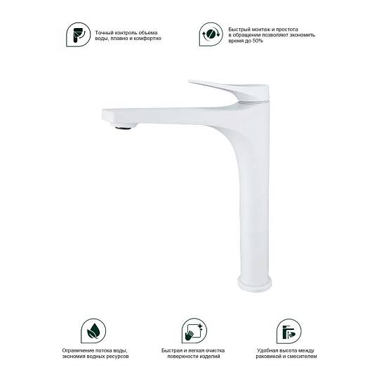 Смеситель для раковины высокий Splenka S54.15.08, белый купить по цене 7 608 руб.