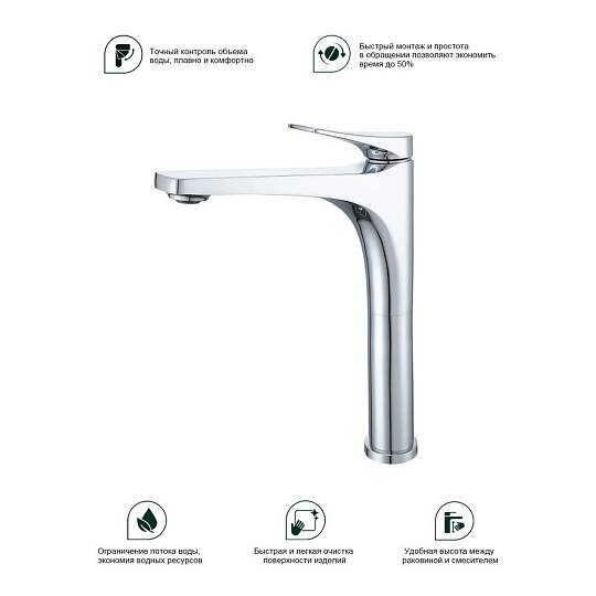 Смеситель для раковины высокий Splenka S54.15, хром — это идеальное сочетание современного минималистичного дизайна и высокого качества. Изготовленный из латуни, этот высокий кран для умывальника обеспечивает долговечность и надёжность в использовании, а также устойчивость к механическим повреждениям. Механизм смесителя для раковины основан на керамическом картридже с рычажным управлением, что гарантирует лёгкость и точность регулировки температуры и напора воды. Его минималистичный дизайн станет настоящим украшением вашей ванной комнаты, гармонично вписываясь в любой интерьер благодаря лаконичным формам и элегантным линиям.