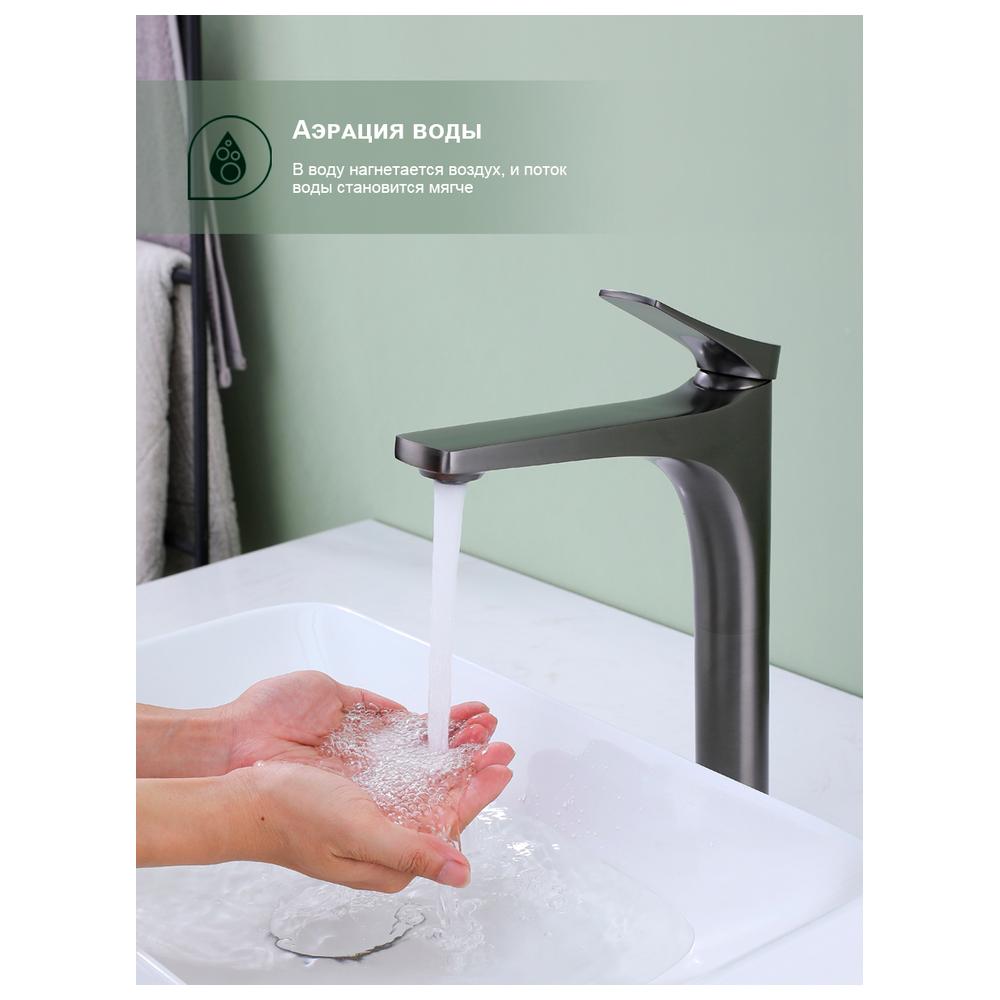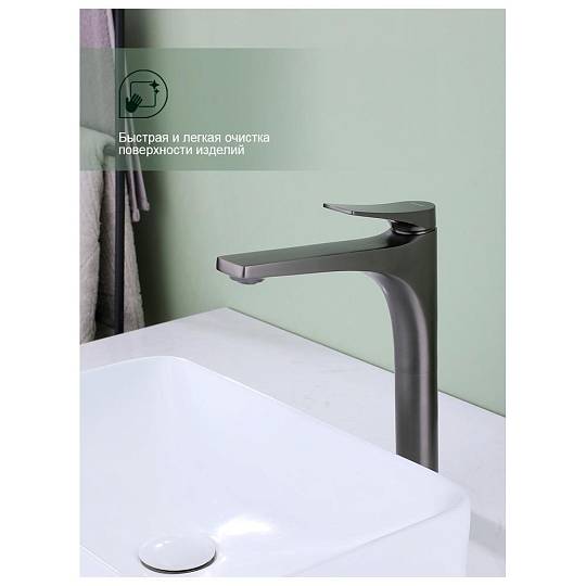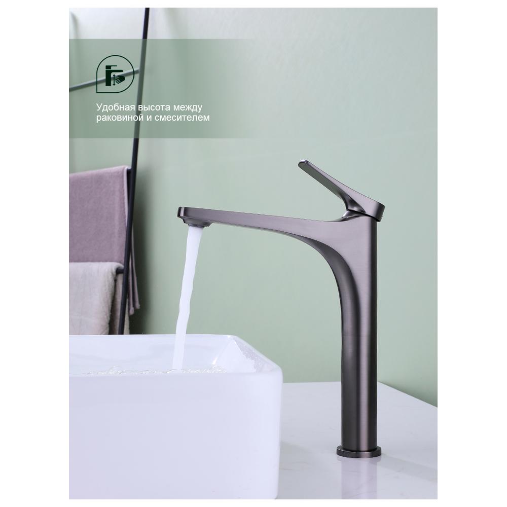 Смеситель для раковины высокий Splenka S54.15.09, графит — это идеальное сочетание современного минималистичного дизайна и высокого качества. Изготовленный из латуни, этот высокий кран для умывальника обеспечивает долговечность и надёжность в использовании, а также устойчивость к механическим повреждениям. Механизм смесителя для раковины основан на керамическом картридже с рычажным управлением, что гарантирует лёгкость и точность регулировки температуры и напора воды. Его минималистичный дизайн станет настоящим украшением вашей ванной комнаты, гармонично вписываясь в любой интерьер благодаря лаконичным формам и элегантным линиям.