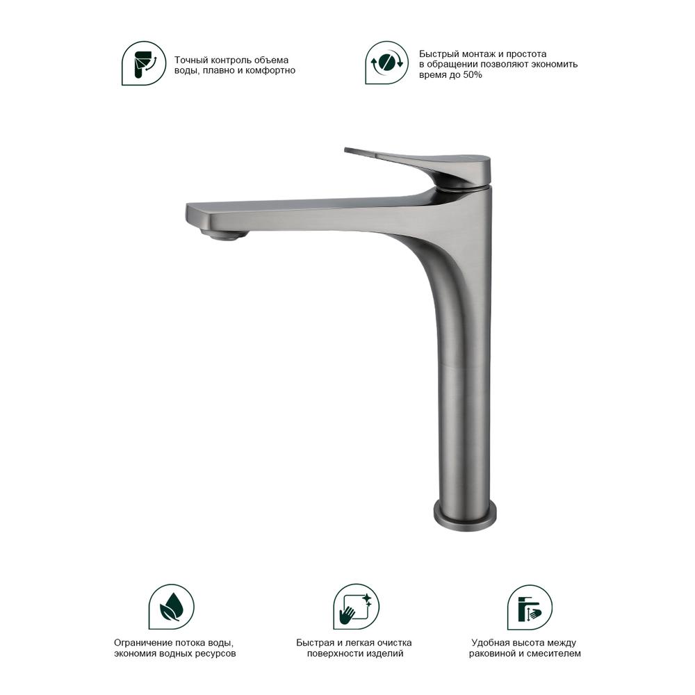 Смеситель для раковины высокий Splenka S54.1.095, графит купить по цене 7 924 руб.
